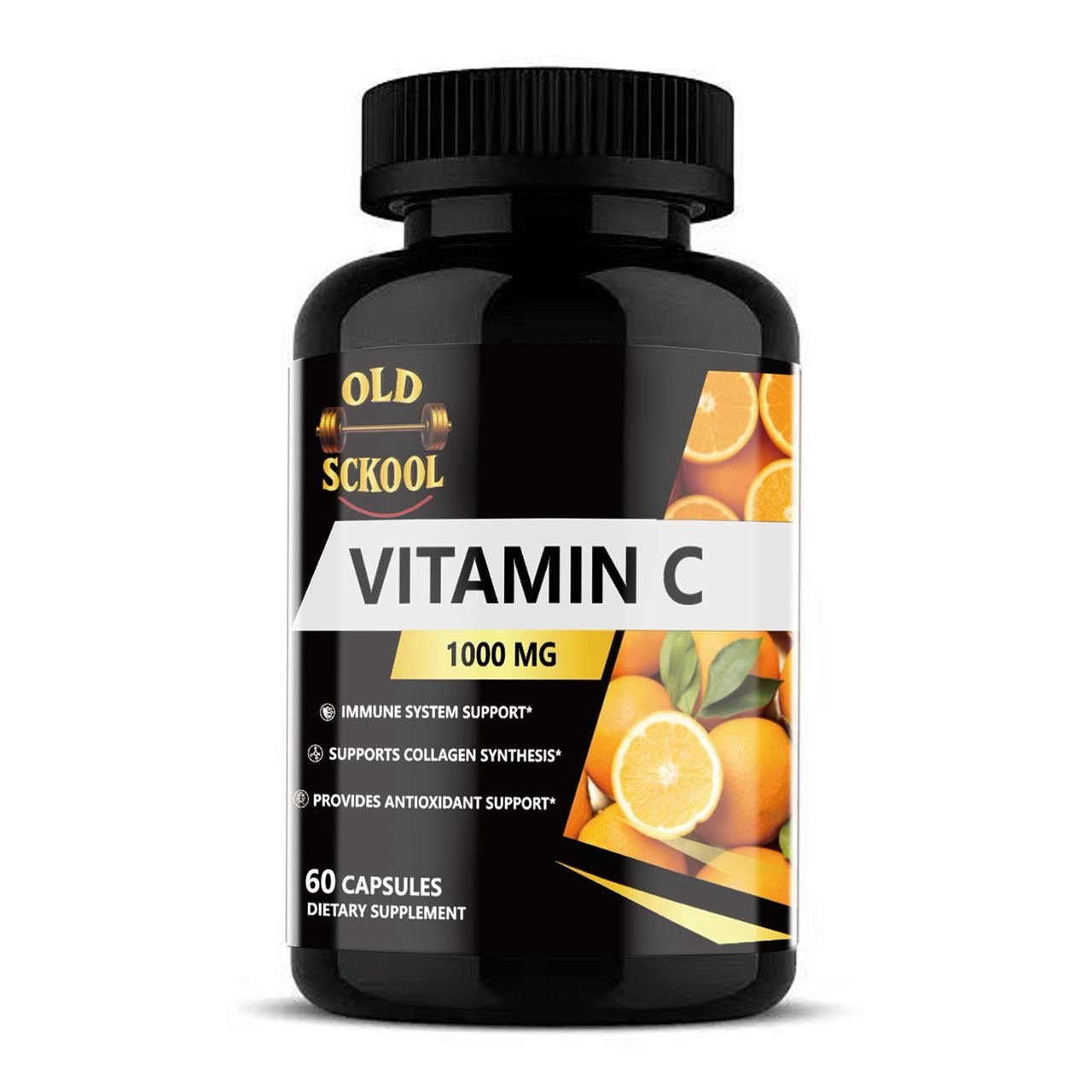 Old Sckool Vitamin C 1000 mg provides immune system support while helping promote collagen synthesis and antioxidant protection. Each bottle contains 60 capsules of a high potency Vitamin C dietary supplement designed to support overall daily wellness.
